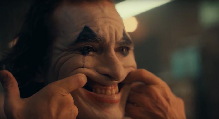En varios puntos clave del tráiler, Joaquin Phoenix reproduce la icónica y perversa carcajada del villano, en lo que parecerán los momentos en los que irá entrando más en su espiral de locura. Uno de ellos es durante un espectáculo de monólogos y otro en el que aparece vestido como payaso en el metro y ríe sonoramente a solas. Además, hay una escena en un camerino en la que Arthur intenta ampliar la longitud de su sonrisa.