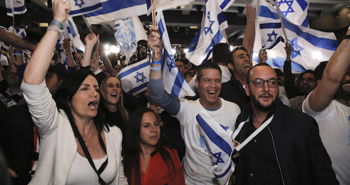 Desde que cerraron las urnas, los candidatos de la coalición centrista Azul y Blanco, sus equipos de campaña y simpatizantes celebraron en una sede habilitada para ello en Tel Aviv los prometedores resultados.