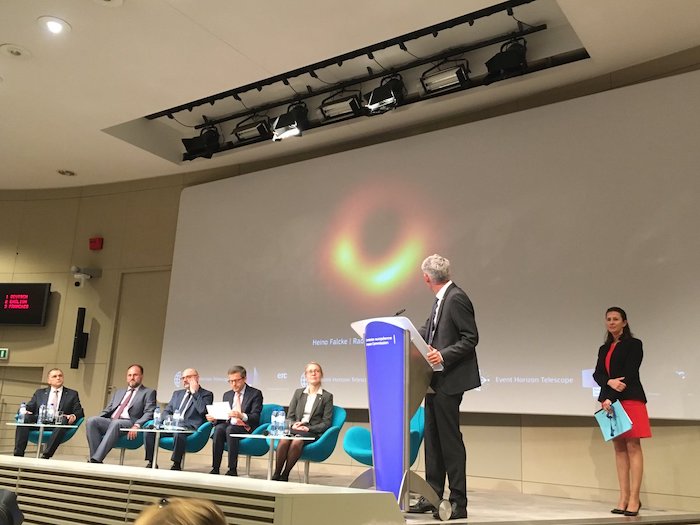 Conferencia en la que fue proyectada en vivo la primera fotografía de un agujero negro.