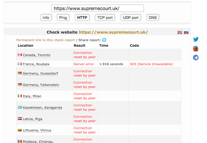 Portales que revelan información sobre sitios caídos y cibeataques confirman la información que difundió el grupo de hactivistas esta tarde. El portal Check-host.net al informa problemas técnicos en las tres direcciones que mencionó el grupo.
