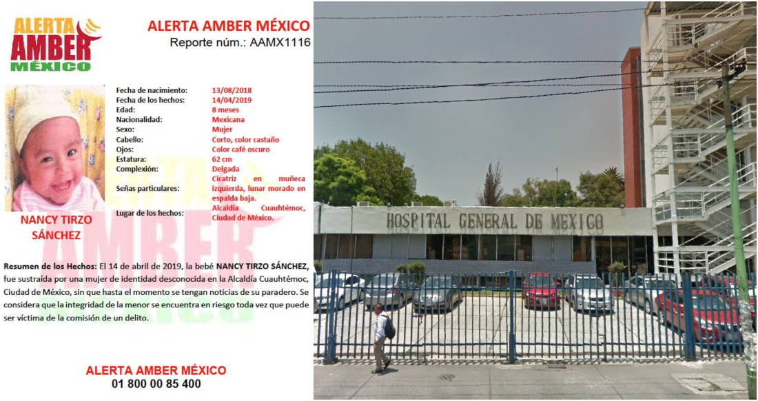 El pasado domingo 14 de abril la mujer raptó a Nancy Tirzo Sánchez en el Hospital General cuando su madre asistió a este centro médico a visitar a su hermana. Hasta el lugar llegó con la bebé y sus dos sobrinos de 15 y 6 años.
