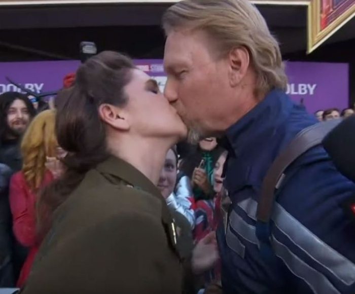 Mientras él hablaba sobre su disfraz de Capitán América aprovechó el momento para arrodillarse y pedirle matrimonio a su novia, quien lucía como Peggy Carter, y con lagrimas en los ojos contestó con un sí. El público emocionado aplaudió el romántico momento.