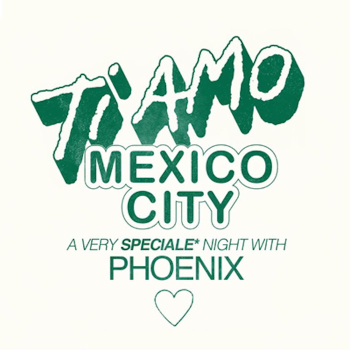 La banda francesa de rock indie Phoenix regresa a México con su reciente producción "Ti Amo". Thomas, Deck, Laurent y Christian se presentarán tres noches en el Plaza Condesa donde sin duda sonarán temas como "Lisztomania", "Ti amo", "Tuttifrutti", "Lasso" y "Rome".