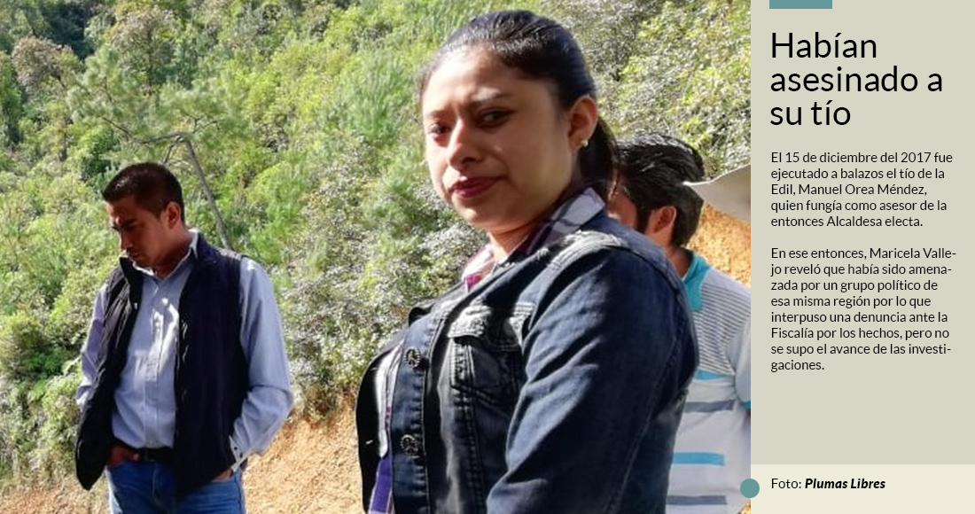 Maricela Vallejo Orea, Alcaldesa de Mixtla de Altamirano, Veracruz, fue asesinada el 23 de abril, en el municipio de Los Reyes, cuando la camioneta en la que viajaba fue atacada a balazos.