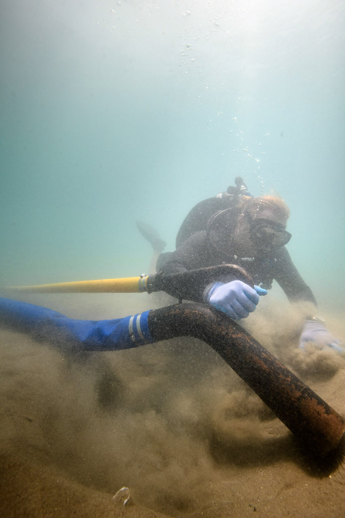 Junco destacó la posibilidad de que en una próxima temporada de exploración en la zona profundizarán en el estudio del ancla y analizarán la posibilidad de sacarla del mar y estabilizarla para que se garantice su conservación. Foto: Jonathan Kingston, INAH, Cuartoscuro