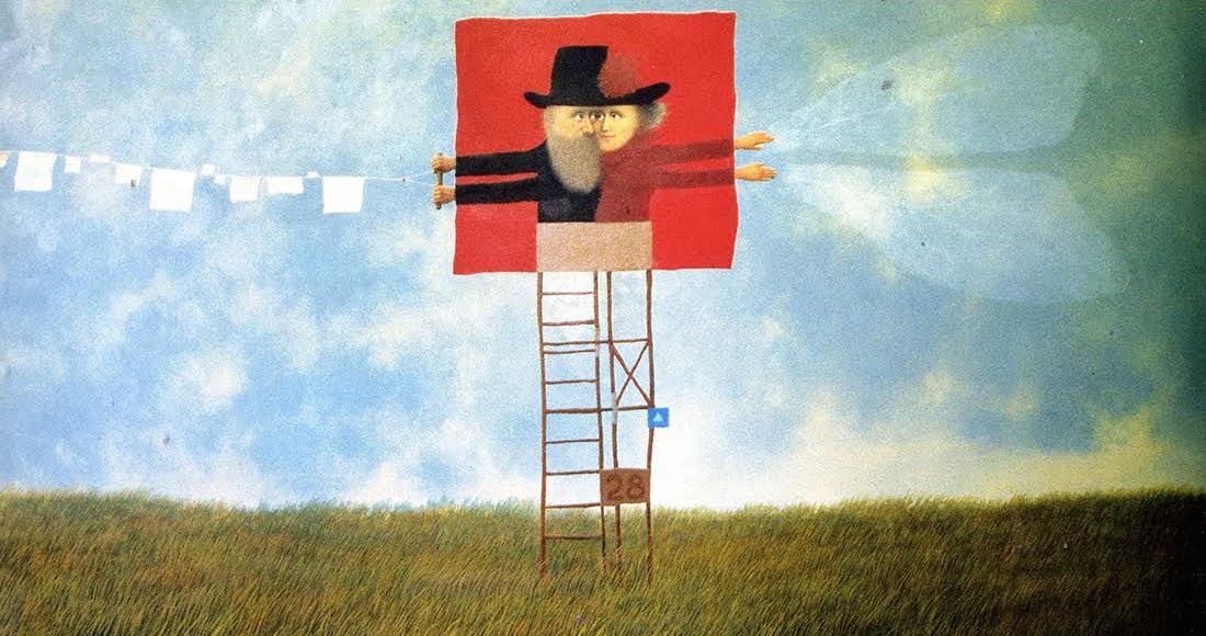 Las palabras utilizadas nos remiten a la oscuridad, el desorden; una nave a lo lejos, perdida en la bruma. Sin embargo, al leer este poema en el libro, lo primero con lo que nos confrontamos es con la pintura, construida con colores vivos: azul, blanco y café claro.