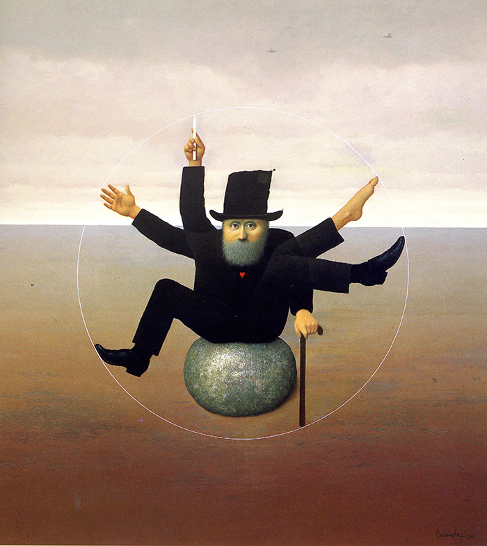 En las pinturas de Castañeda, el hombre barbudo que se repite en casi todas “es un equivalente pictórico de la primera persona del poeta”, nos dice Alberto Ruy Sánchez en el prólogo. Es decir, nos encontramos frente a un personaje compartido en los poemas y en los cuadros, que en ambos casos representan al yo poético de Castañeda. Los sentimientos y actos reflejados en los versos, se comunican con los colores y la luz de los cuadros, creando ya sea un poema extendido a lo visual, o una pintura ampliada a lo verbal.