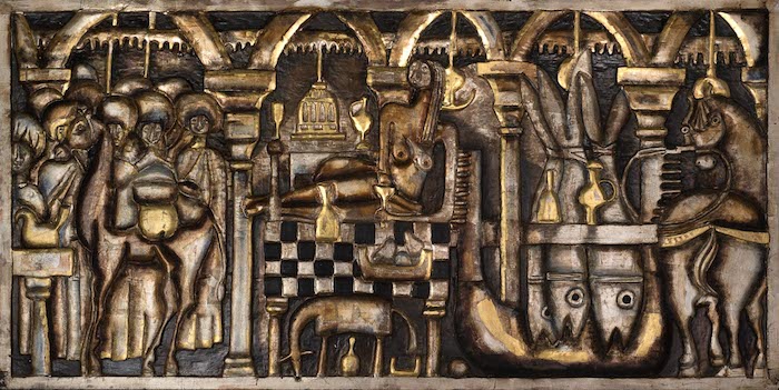 Y como en arte el qué se halla dentro del cómo, habrá que dilucidar sus maneras. Ese hieratismo del gótico mezclado con el movimiento del barroco, por si fuera poco, arde en los más detonantes colores. Ufanos de su colorística hiperbolizada, acorde al alto voltaje de la motivación que les diera vida, hay en estas pinturas ecos de los colores del mercado y el circo, de la fiesta del juego en la cultura, los del homo ludens que perfilara Johan Huzinga. ¿Hay en esta pintura una reverberación de lo brut, de lo folk, de los fauves? Sí. ¿Algo de Klee o Chagall, los barridos de Cezanne, los colores de Matisse?