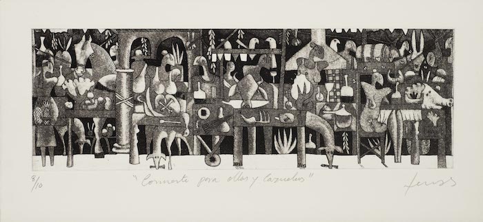 El artista oaxaqueño Damián Lescas, pintor y grabador, apasionado de los viajes y la música, es una de esas magnitudes que van por la fusión, en uno, de varios lenguajes que, con base en una casa cimentada en la pintura y la gráfica (partiendo de la bidimensión tal y como la conocemos), postula en su obra la comunicación con estas otras aventuras del ser sensible y, por si fuera poco, tomando como axis mundi de tal entramado a la comida como placer. Rara avis, si se toma en cuenta que antes la literatura o el cine, la historia de las mentalidades o la antropología social que la pintura, abren espacio para tales adentramientos.