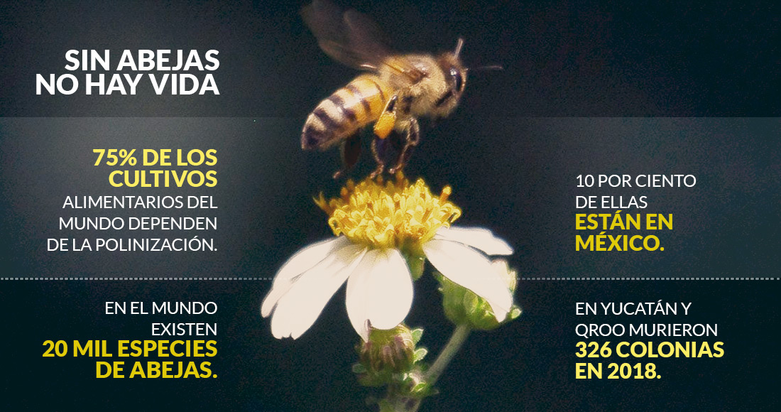 Esto significa que, anualmente, en la entidad se mueren de 600 millones a mil 200 millones de abejas pues cada colmena alberga entre 30 y 60 mil ejemplares; mil 200 millones de abejas que ya no realizarán su función de polinizar.