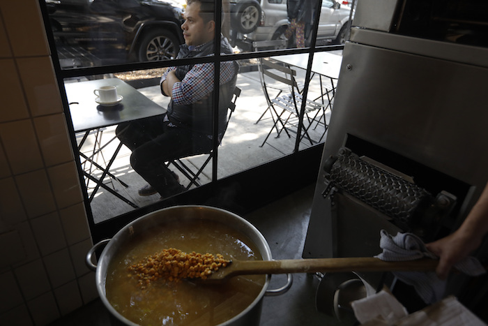 En Molino El Pujol, donde las mañanas transitan en medio de aire caliente y olor a maíz, los clientes no parecen tardar mucho en dejarse seducir. Algunos giran los ojos hacia el cielo cuando dan el primer sorbo a su atole —una cocción dulce de maíz en agua— y otros dejan escapar un gemido cuando el primer pedazo de tamal —masa rellena de frijol con una hierba local— vuela hasta su boca desde la punta de un tenedor.