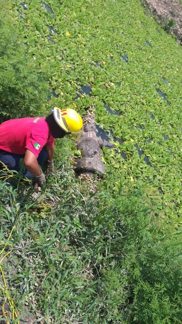 Los trabajadores de la oficina del sindicato del Telebachillerato que se encuentra a un costado del canal, se percataron del olor fétido que despedía el animal y se dieron cuenta que se trataba del enorme reptil, que era conocido en la colonia desde hace varios años.