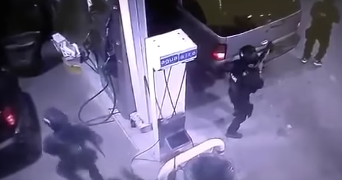 En las imágenes de las cámaras de seguridad de una gasolinera se muestra los momentos antes del enfrentamiento, donde con total cinismo los integrantes del Cártel del Noreste cargan combustible.
