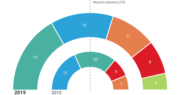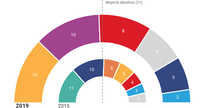 Madrid, 26 de mayo (El Diario.es).- Cuatro años después, la derecha recupera la Alcaldía de Madrid. La suma de Partido Popular, Ciudadanos y Vox va a sentar en el Palacio de Cibeles al abogado del Estado José Luis Martínez Almeida. Manuela Carmena y su partido Más Madrid se mantienen como fuerza más votada, pero la suma no da con el PSOE de Pepu Hernández, que saca 8 concejales. El ex concejal de Hacienda Carlos Sánchez Mato y su lista de Madrid en Pie no saca representación pese a sus 41 mil votos.