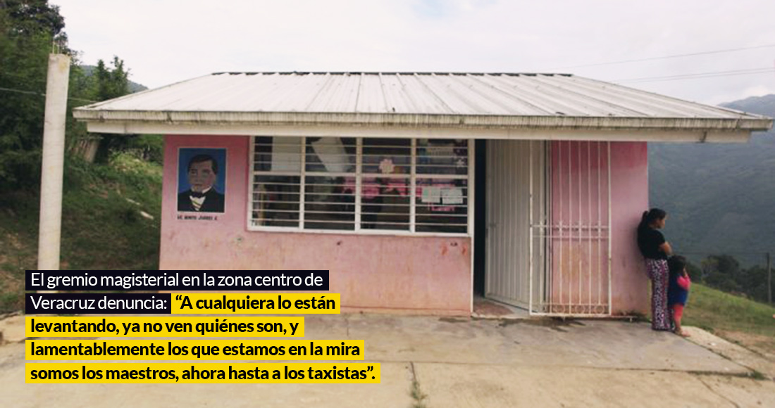 Alejandro Escobar Ávila, secretario de esa sección sindical, denunció que tanto el gremio magisterial, como la sociedad en general sufren por la ola de secuestros y otros delitos. “Hasta cualquiera lo están levantando, ya no ven quiénes son, y lamentablemente los que estamos en la mira somos los maestros, ahora hasta a los taxistas”, dijo.