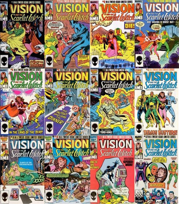 Hay dos series de cómics en las que WandaVision podría inspirarse. La primera de ellas es The Vision and the Scarlet Witch, que se publicó en dos partes en 1982 y 1985, respectivamente. Ambas se centraron en la relación de los héroes, que se casan y abadonan a los Vengadores para asentarse en los suburbios. El cómic incluso incluye el nacimiento de sus hijos, Tommy y William.