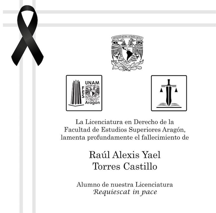 A través de su página de Facebook, la Licenciatura en Derecho de la FES Aragón lamentó el fallecimiento.
