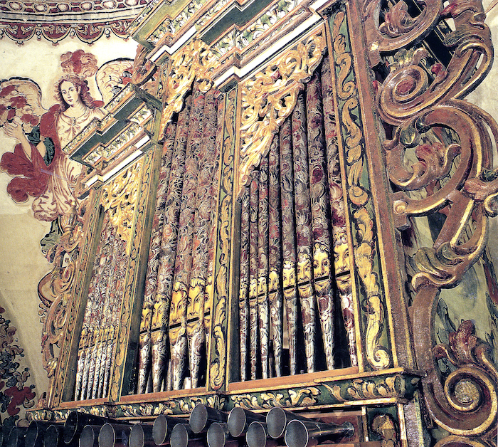Más allá, en la Iglesia de San Jerónimo Tlacochahuaya, canta un órgano, con un decorado barroco. Los tubos despiertan para dejar pasar el aire, a través de las bocas de unos personajes peculiares, que nos miran y se miran entre sí (Arte escondido de Oaxaca, Héctor Perea).
