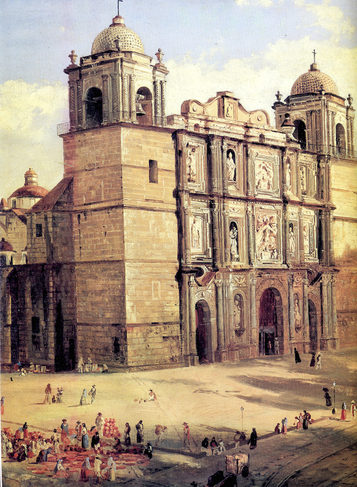 Podemos recorrer la ciudad a partir de las imágenes poéticas que despiertan en quienes la visitan. Oaxaca es una ciudad trazada en retícula. Al centro de la red encontramos recuerdos del mar. En el zócalo, que hace algunos años bien pudo ser un templo meditativo, se encuentra un espacio vacío, que por las noches exhala oleadas de música. Un kiosco con forma de “concha acústica” (El zócalo, Eliot Weinberger). Quizá una concha de mar que inspira los instrumentos que tocan dentro de sí. Unas calles más allá, al oeste, está la segunda conexión: la patrona de los marineros, la Virgen de la Soledad. Sus devotos escuchan, cuando están cerca de ella, los ecos del mar salpicando su vestido en un vaivén continuo, para que el sabor a sal y la humedad permanezcan impregandos en la tela (La Soledad, Armando Sarignana).