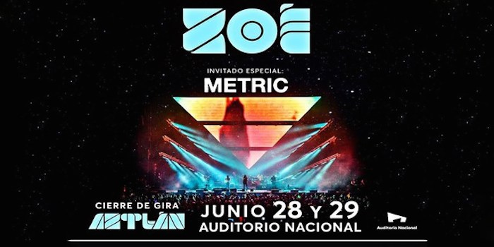 Zoé cerrará su gira Aztlán junto a Metric en el Auditorio Nacional el 28 y 29 de junio. El reciente albúm de la banda mexicano les hizo ganar un premio Grammy en la categoría de de Mejor Álbum Latino, Rock, Urbano o Alternativo.