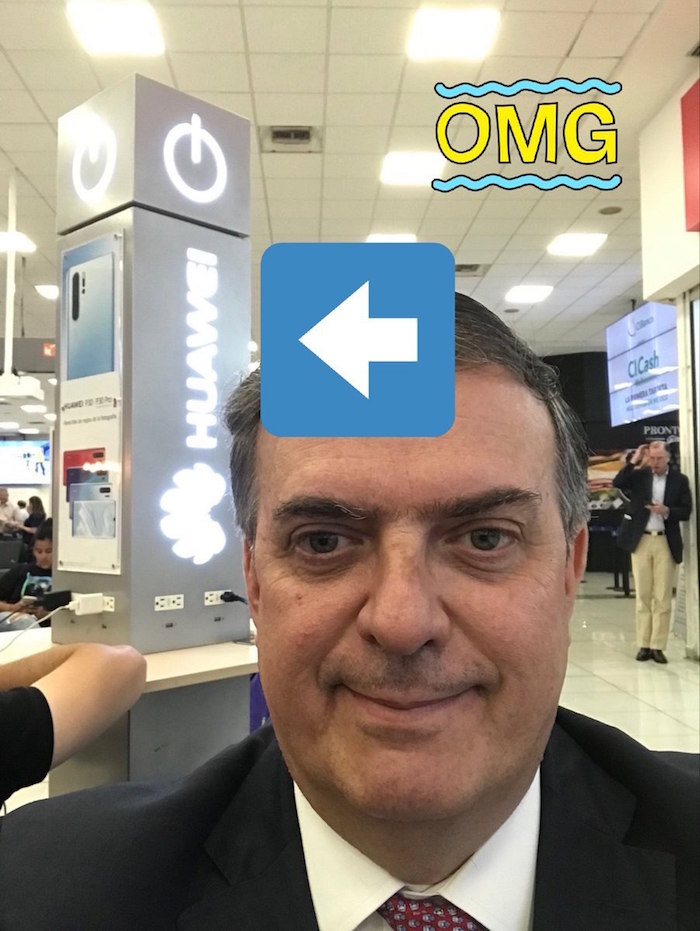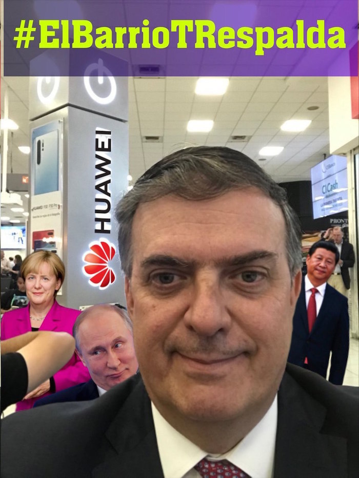 - ¡Vaya, Ebrard! Muy astuto, primero manda una carta al gobierno de EEUU, para negociar pero mientras tanto está planeando un revire como el que China y Huawei nos está aplicando, y por eso se toma una foto con el logo de dicha marca.
