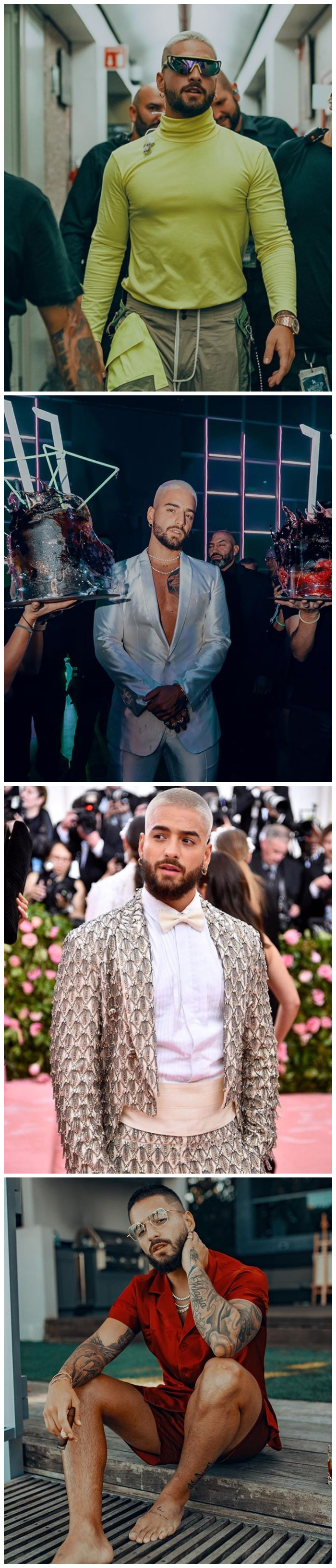 Al igual que Madonna, Maluma ha cambiado de imagen más de una vez en su carrera y le gusta compartir sus atuendos en Instagram, donde sus fotos suman miles de “me gusta” en cuestión de minutos. Se atreve a experimentar con diferentes colores, zapatos poco convencionales, telas exóticas. Este año pasó de tener una larga melena negra a estar casi rapado y rubio, y donó su cabello para niños con cáncer.