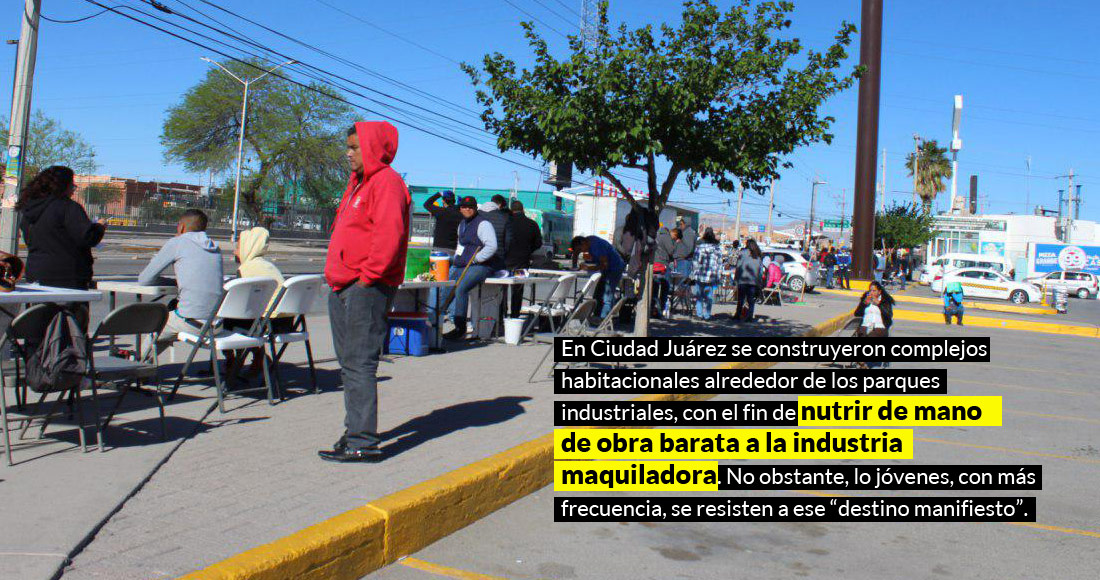 En Ciudad Juárez, refiere Gómez Herrera, se construyeron complejos habitacionales alrededor de los parques industriales, con el fin de nutrir de mano de obra barata a la industria maquiladora. No obstante, lo jóvenes, con más frecuencia, se resisten a ese “destino manifiesto”.