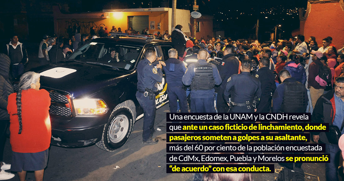 Una mayoría en Edomex, Morelos, Puebla y CdMx está a favor de los linchamientos, dicen UNAM-CNDH