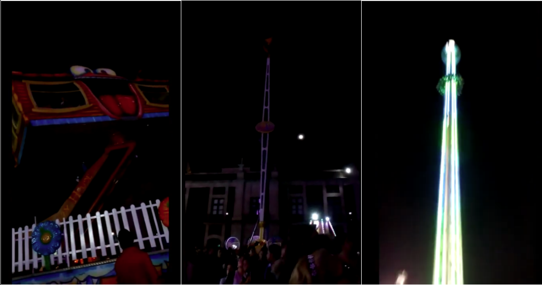 Bomberos de la Estación Iztapalapa acudieron a Periférico esquina Avenida Tláhuac Unidad Mirasoles, En Plaza Las Antenas elJuego mecánico denominado katapuun, se quedó atorado en las alturas en un lapso de 3 minutos aprox.