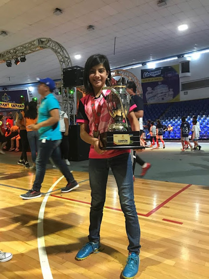 Nina ha jugado fútbol desde que tiene cinco años, pero la mayoría de veces ha estado en equipos que son en su mayoría hombres. Foto: Cortesía