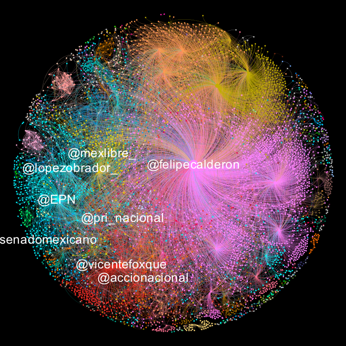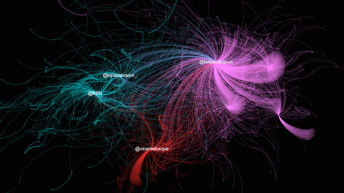 Al interior de la red las cuentas de Felipe Calderón, Enrique Peña Nieto, y Vicente Fox se interconectan por las menciones que reciben de numerosos usuarios. Foto: SinEmbargo