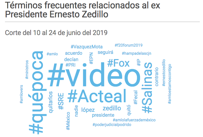 Lo que sugieren estos términos es que de manera simultánea a las discusiones que se generan por información reciente en torno a ellos, en la red se articulan también discusiones sobre asuntos que no lograron superar estos ex mandatarios durante sus mandatos, es el caso de Felipe Calderón, a quien se le reclama por la violencia desatada en el país y casos como el de la masacre de migrantes de San Fernando; de Enrique Peña Nieto, a quien se le señala de manera constante por el caso Ayotzinapa, y de Ernesto Zedillo, a quien se le reprocha por la masacre de Acteal.