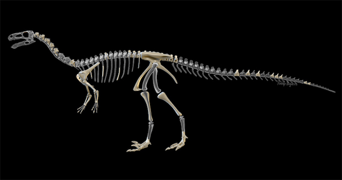 El fósil encontrado medía poco más de 1.5 metros de longitud y formaría parte del linaje de los terópodos, como el Tyranossaurius y el Velocirráptor. Foto: Universidad de Sao Paulo