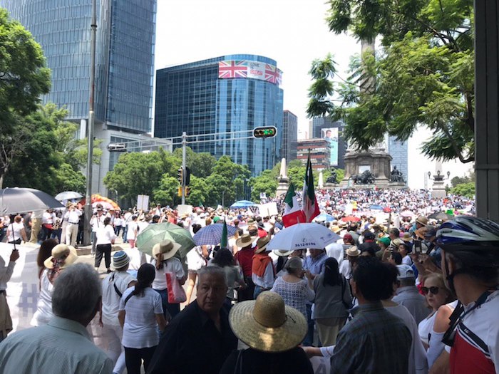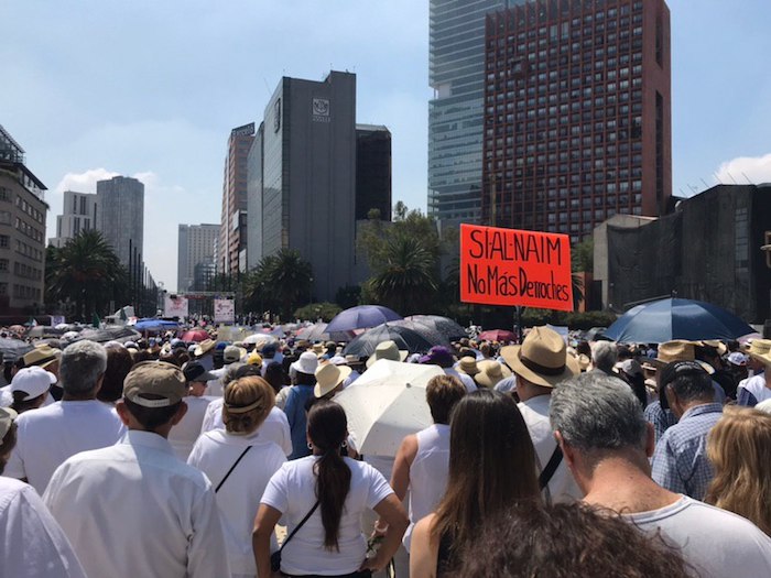 La marcha concluyó en el Ángel de la Independencia con diferentes consignas como “No al viejo loco, queremos a Texcoco”, “A mano alzada pedimos que se vaya” y un “Queremos un Aburto”.
