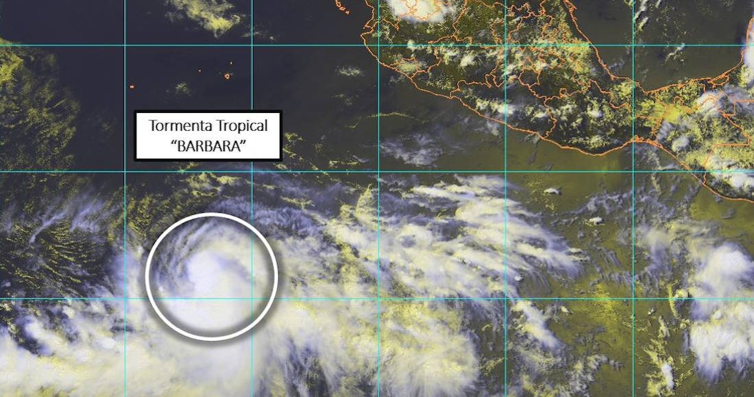 La Comisión Nacional del Agua aseguró que la Tormenta Tropical "Barbara" se mantiene alejada de las costas del Pacífico mexicano, a mil 355 kilómetros de Cabo San Lucas y con vientos sostenidos.