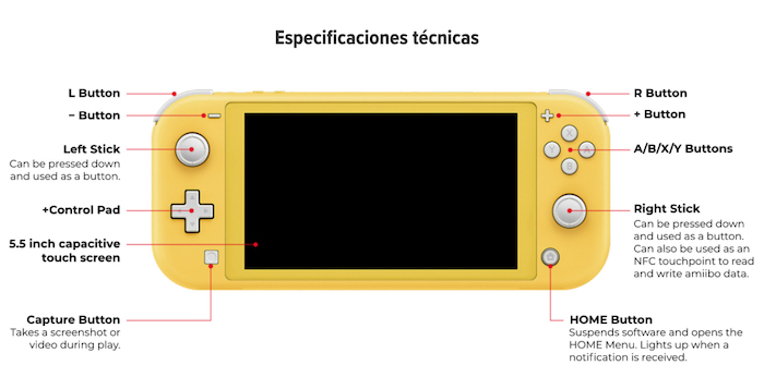 Además, los botones de dirección se han reemplazado por una cruz de control, y se han eliminado también la cámara infrarroja de movimiento y la vibración HD presentes en la Switch estándar.