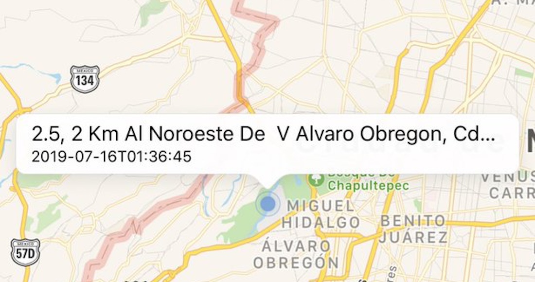 –16 de julio, a las 01:36 horas, un sismo de magnitud 2.5 con epicentro en Álvaro Obregón.
