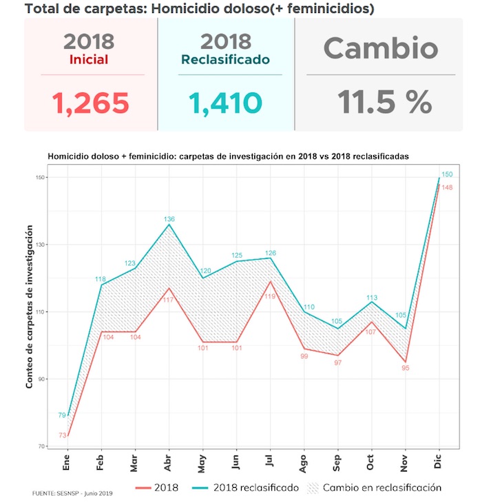 El Consejero presidente explicó además que “el homicidio registraba mil 265 [carpetas de investigación] cuando en realidad eran mil 410. También es muy grave, estamos hablando de un subconteo de 11.5 por ciento”.