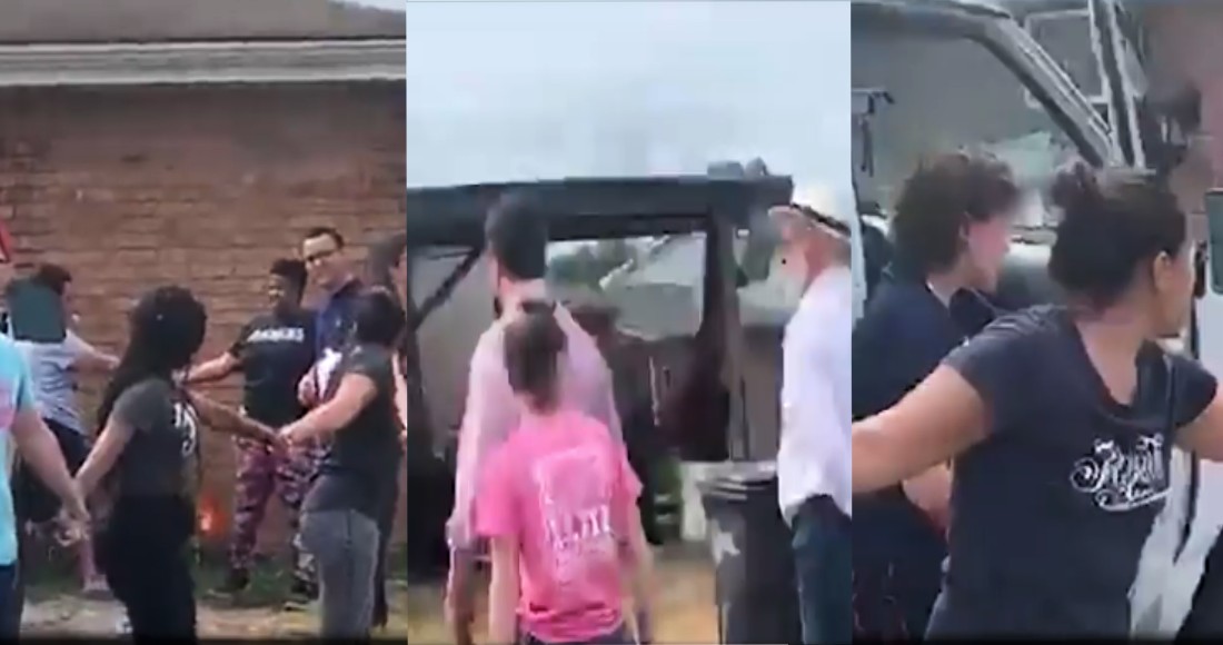 En las imágenes se puede ver a niños pegándole con un palo a la piñata de ICE.