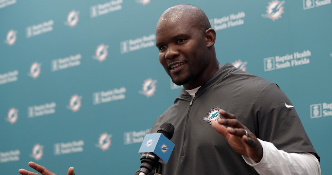 Davie, Florida, EU (AP).– El entrenador novato Brian Flores se secó el sudor de la frente al pararse delante de los micrófonos de la prensa para el arranque de los entrenamientos de pretemporada de los Dolphins de Miami.