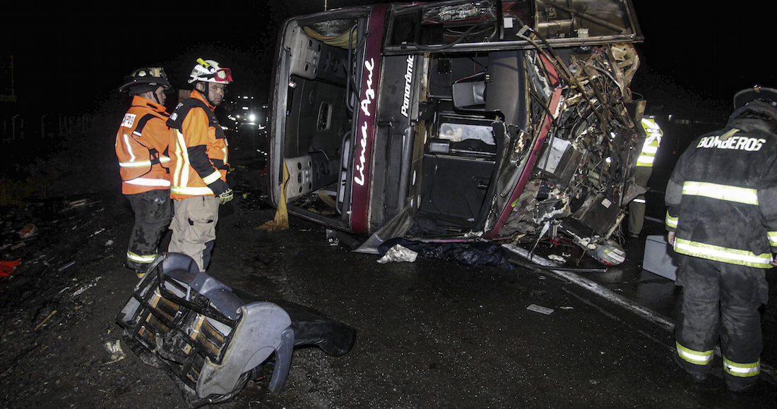 El accidente se registró después de la medianoche en la Ruta 5, a unos 60 kilómetros al sur de Santiago, cuando el autobús se dirigía a Temuco, distante a unos 700 kilómetros de la capital.