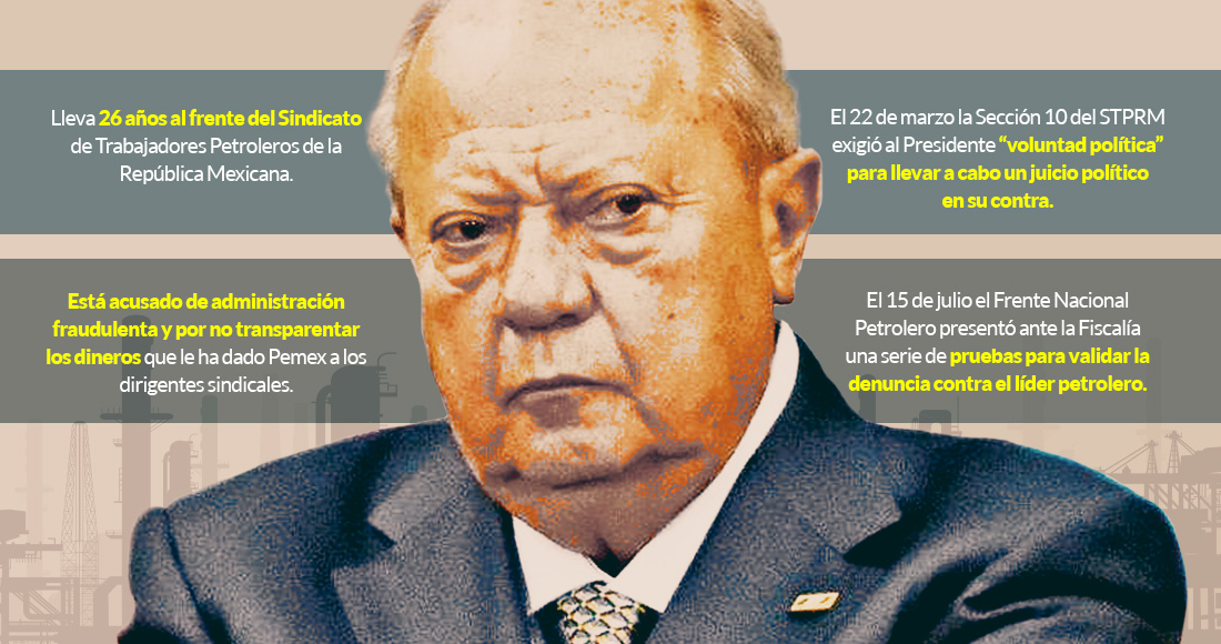 La representación sindical de más de 100 mil trabajadores de Petróleos Mexicanos (Pemex) está en disputa entre grupos de disidentes mientras el Secretario General del STPRM, Carlos Romero Deschamps, se encuentra bajo la mira judicial.