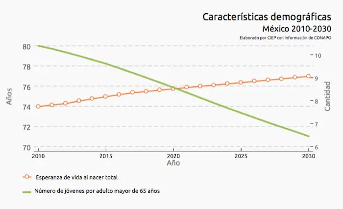 "No puedes hablar de seguridad social en este país –sea salud o pensiones– sin pensar en la transición demográfica que se está viviendo, porque cuando la población envejece, la transición demográfica lleva de la mano una transición epidemiológica. En lugar de que se enfermen de padecimientos contagiosos, empiezan las enfermedades crónico-degenerativas, las cuales son muy caras para el erario", explicó el director del CIEP, Héctor Villarreal.