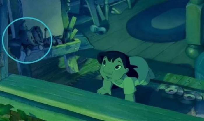 La película en Hawaii nos lleva a una de los clásicos de Disney: entre los juguetes de Lilo podemos ver a un Dumbo de grandes orejas.