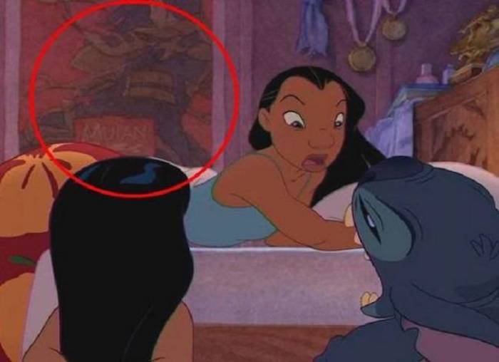 No hay nada mejor que ver a dos chicas independientes en Lilo y Stich con el póster de una heroína que luchó por la libertad de la mujer: Mulan luce la pared de la habitación de la hermana de Lilo.