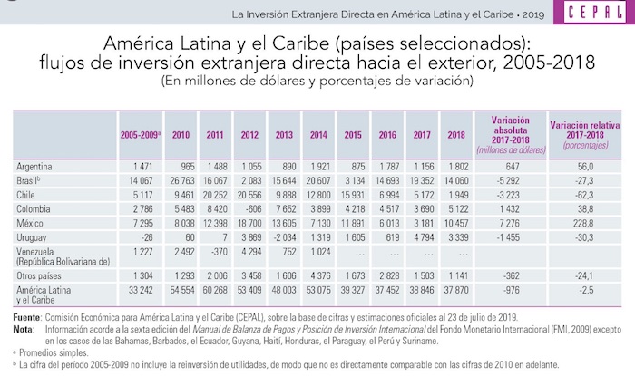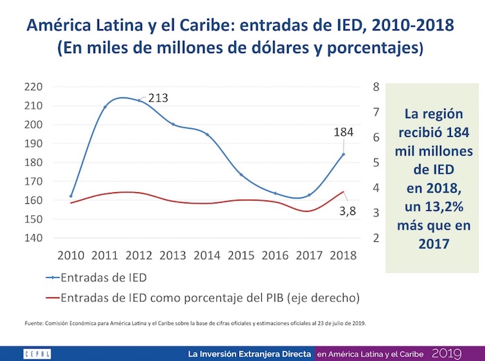 De cara al 2019, la Cepal calcula una leve disminución del 0.8 por ciento de la inversión extranjera en la región, pese a que el primer trimestre del año ha tenido números positivos.