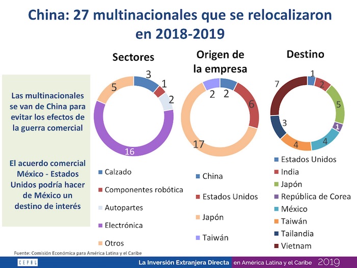 En cuanto al origen de las inversiones, la Cepal destacó que en 2018 se mantuvo la tendencia de los últimos años y los principales flujos de IED procedieron de Europa, Estados Unidos y China.