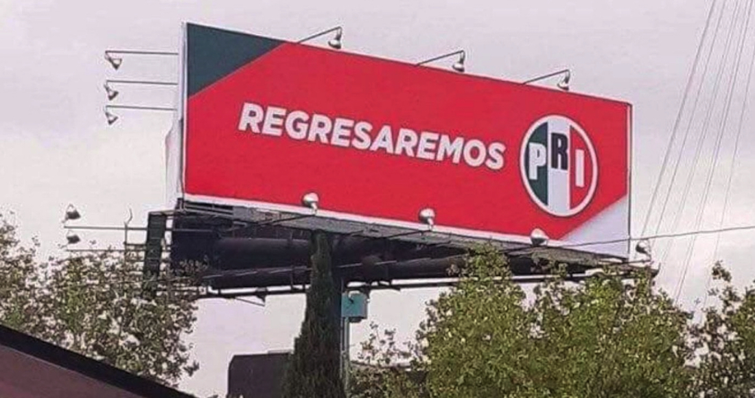 El espectacular es sencillo. Hay un fondo rojo, el logo del que fuera conocido también como "partido de Estado" y una palabra, "regresaremos".
