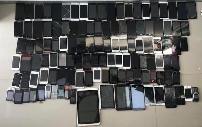 Añadieron que en total fueron asegurados 117 teléfonos y tres tabletas electrónicas; aparatos electrónicos que serán analizados para obtener sus medios de identificación a fin de establecer si se encuentran relacionados con algún hecho delictivo.