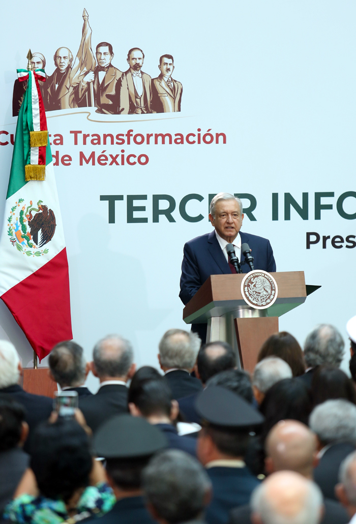 Andrés Manuel López Obrador se dirigió a la Nación en el marco de su Primer Informe de Gobierno. Al interior de Palacio Nacional, el Presidente fue celebrado por los poderes políticos, económico y militar, en una ceremonia como no se veía desde el año 2006.